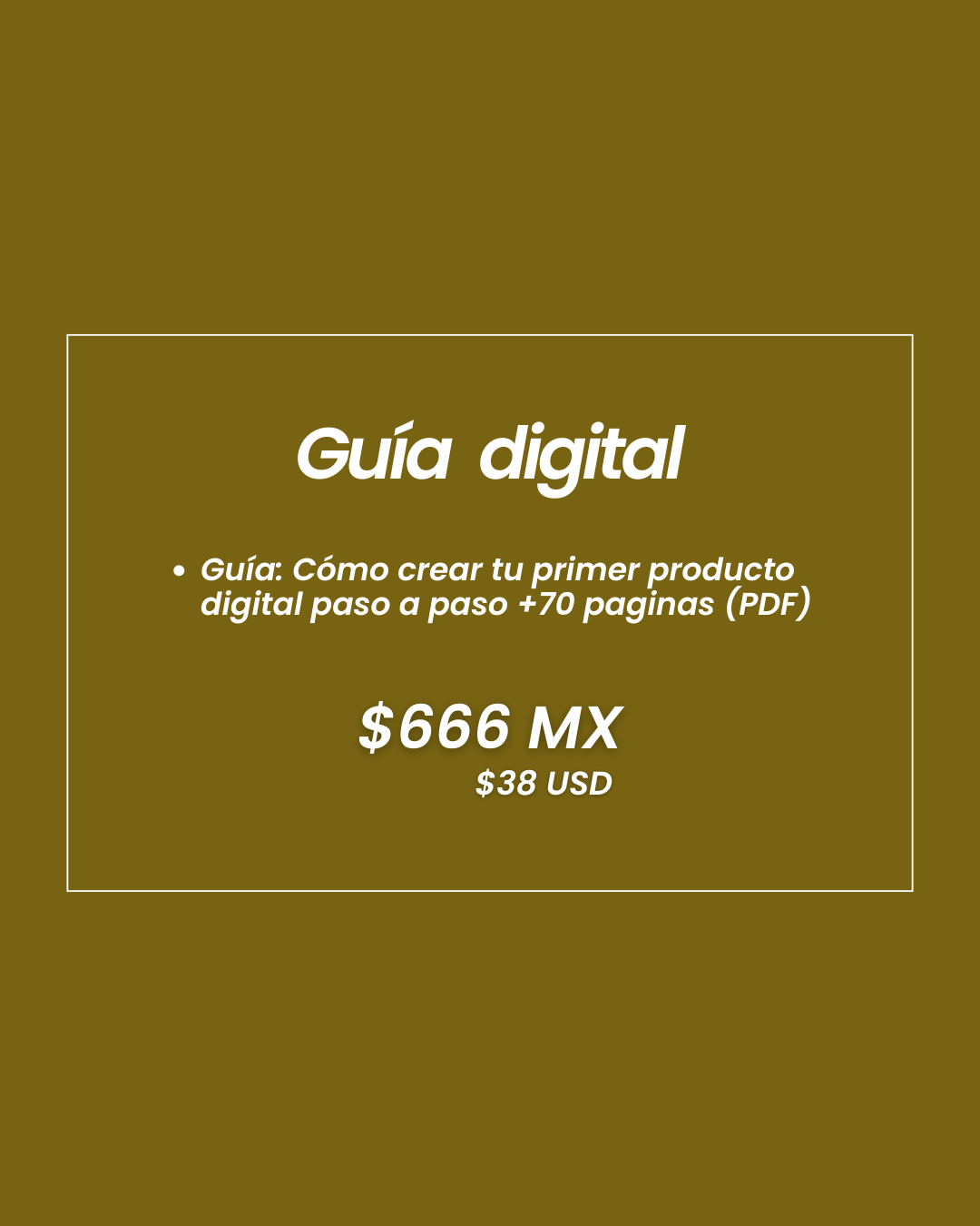 Realmente lo único que pagarías sería la página en la que decidirás vender tu producto digital que en este caso va de los $400 mxn a 1,000 mxn) de igual forma yo te enseño la que yo uso, cómo la hice y cmo configurar todo para vender tu producto digital. Pero como te mencione anteriormente, también hay una opción de crearlo sin gastar UN SOLO PESO. Lo único que tendrás que invertir será tu tiempo en crearlo, venderlo y mandarlo a tus clientes.